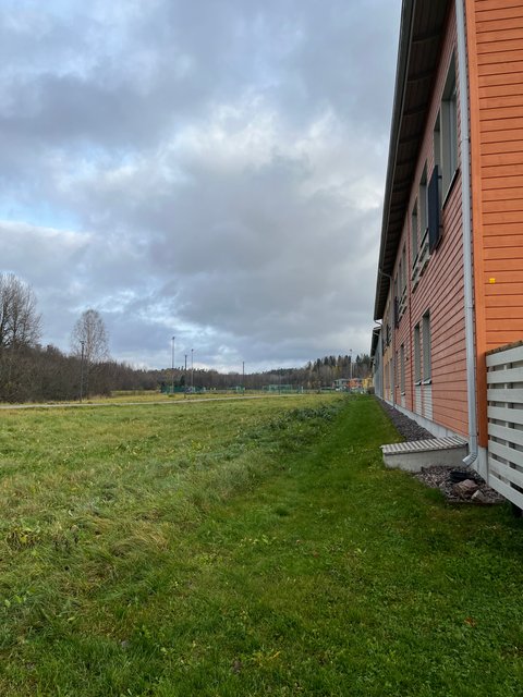 Taloyhtiön oma piha-alue on turvallinen ja vehreä. Yhtiön tontti rajautuu puistoalueeseen - täällä todella lähdet ulkoilemaan suoraan omasta pihasta. Aivan läheltä löytyy ulkokuntosali, pallokenttä ja päiväkoti. Kaupat ovat kävelymatkan päässä.
