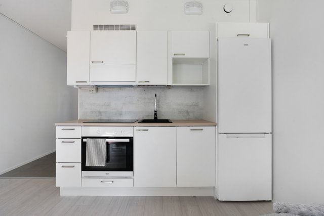 - Jääkaappipakastin, liesi, uuni, liesituuletin, ja astianpesukone