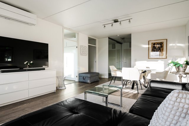 Asumismukavuuden takaa kesähelteillä huoneistoon asennettu ilmalämpöpumppu, joka viilentää kodin miellyttäväksi.