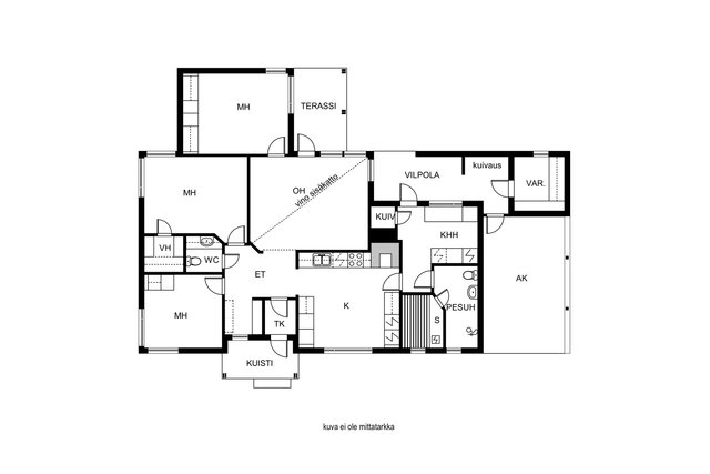 - Pinta-ala ei ole tarkistusmitattu ja todellinen pinta-ala voi olla suurempi tai pienempi, kuin ilmoitettu