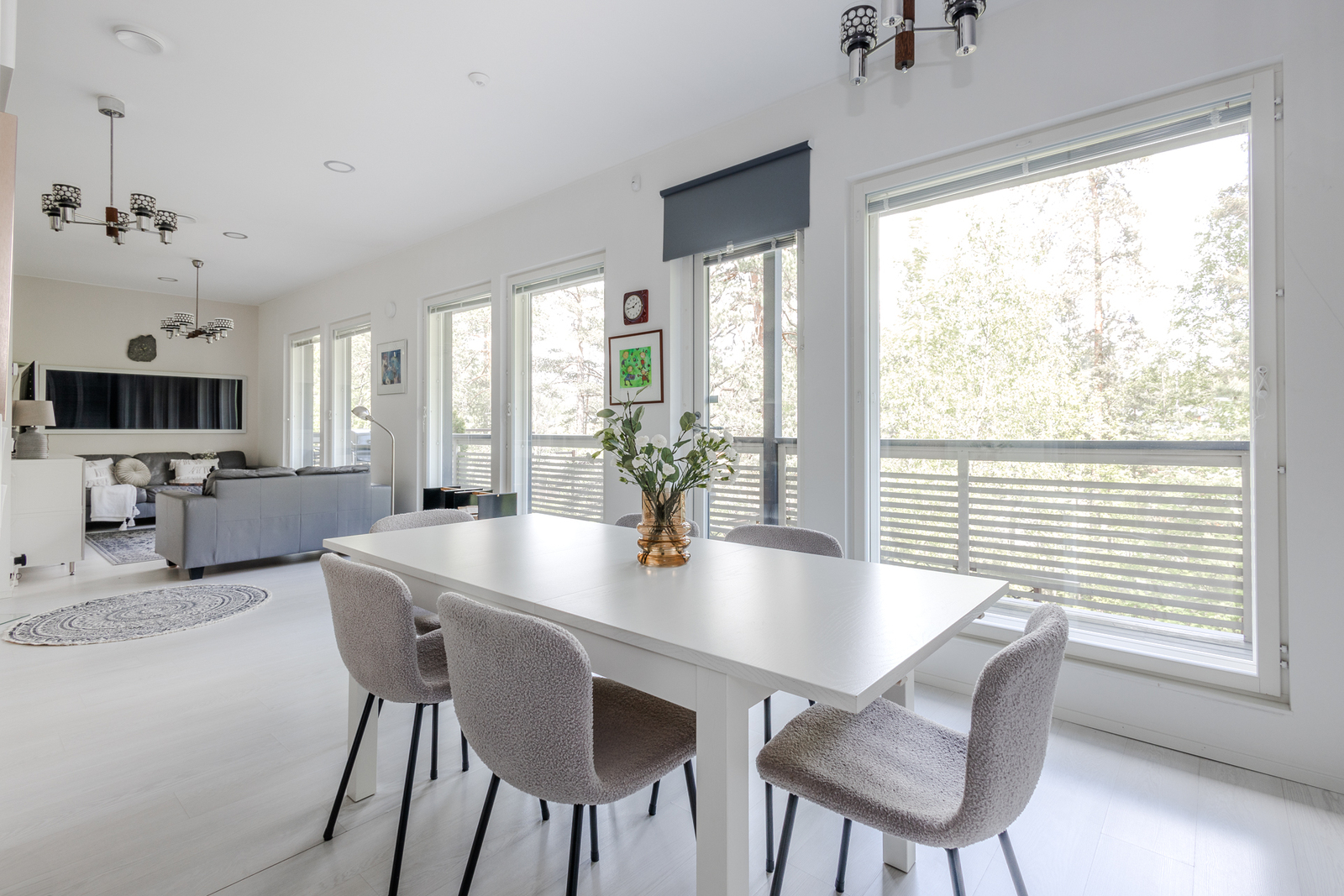 Tässä talossa on arvokas puurakenne yhdistetty huippumoderneihin mukavuuksiin ja tyylikkääseen muotokieleen. Sijainti kallion päällä hurmaa arkkitehtuurillaan ja huolella suunnitelluilla ja käytännöllisillä tiloillaan. Kaksikerroksinen koti tarjoaa avaria, valoisia oleskelutiloja, toimivan keittiön , upeasta saunaosastosta tai parvekkeista puhumattakaan. Asukkaat ovat valinneet laadukkaat materiaalit sekä viimeisimmän ajan mukavuudet ja talotekniset ratkaisut kuten maalämpö, lattialämmitys ja integroitu hälytysjärjestelmä.