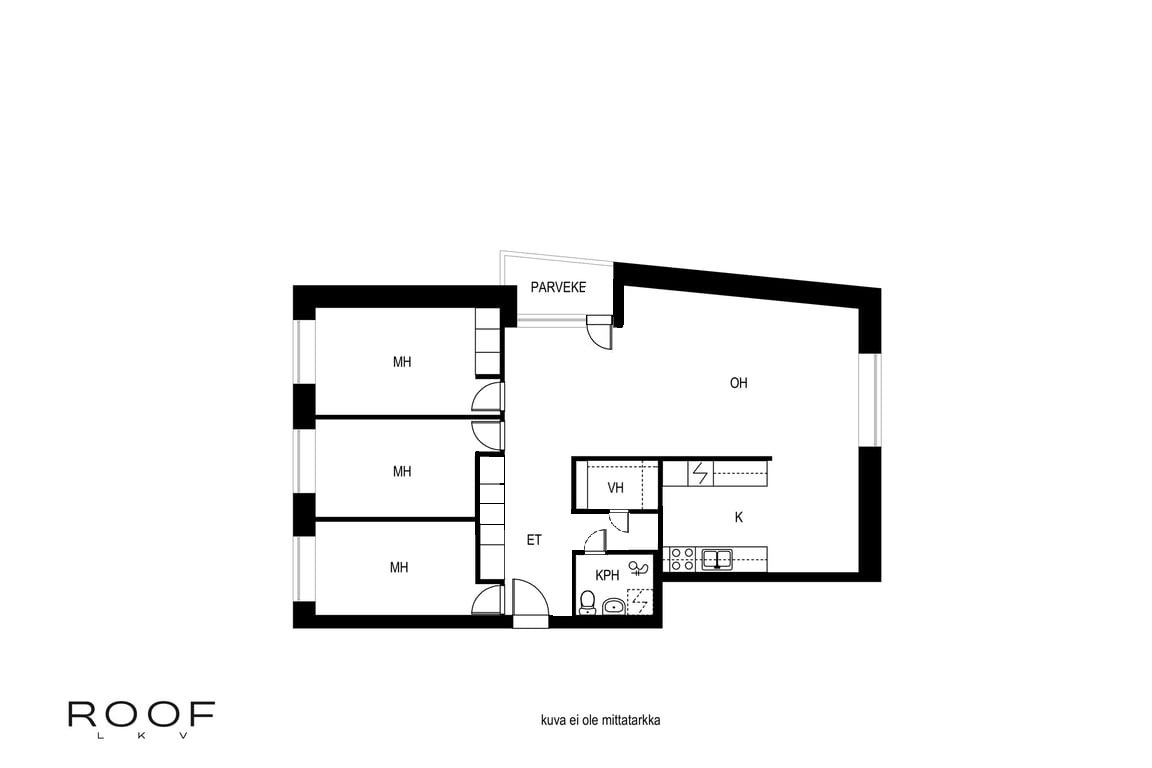 - Ei tarkistusmitattu. Pinta-alat saattavat tämän ikäisissä kohteissa (yhtiö rekisteröity ennen 01.01.1992) poiketa olennaisestikin asuinrakennusten nykyisten mittaustapojen ja standardien (SFS 5139) mukaan laskettavasta asuintilojen pinta-alasta. Pinta-ala voi siis olla edellä mainittua pienempi tai suurempi.