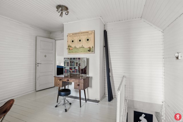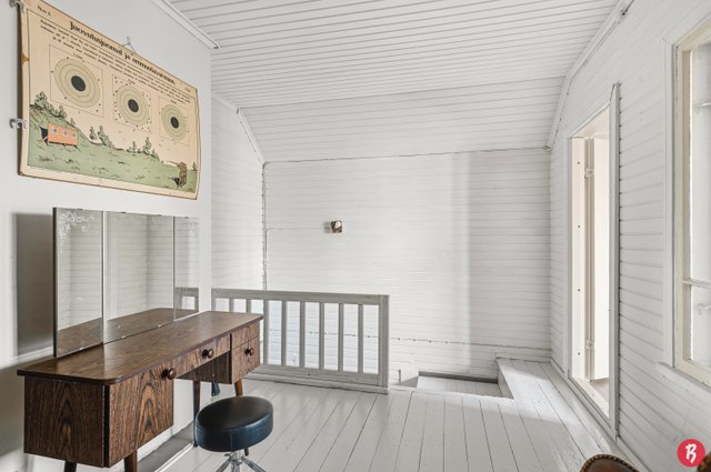 - Sisäkatot valkoiseksi maalattua puupaneelia. Huonekorkeus 275cm.