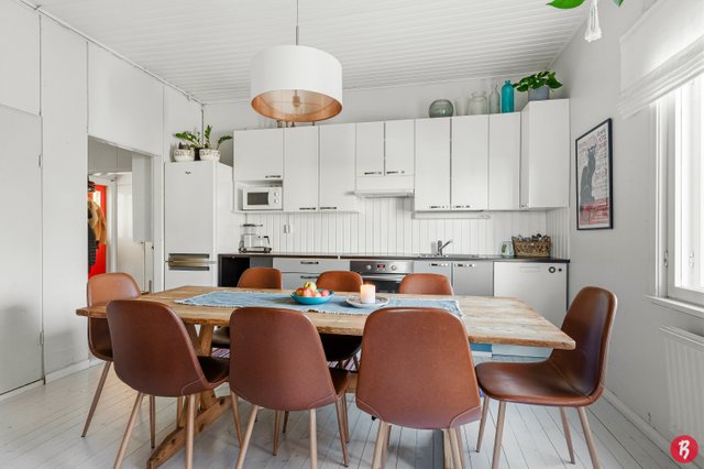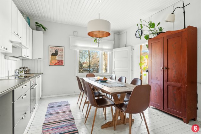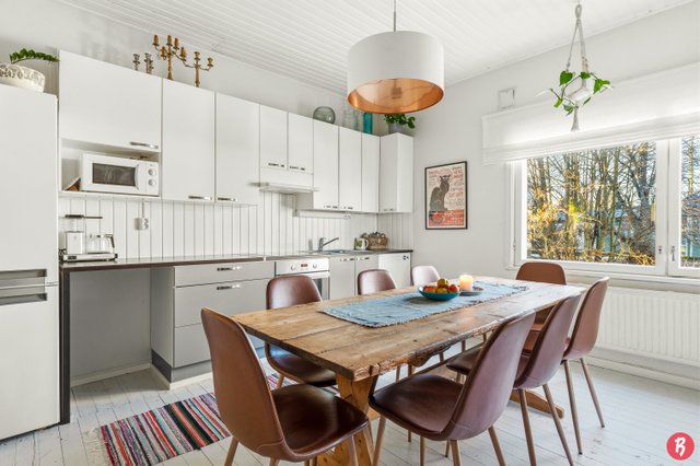 Tilavat huoneet muuntuvat helposti asukkaiden tarpeiden mukaan ja lämmitys hoituu todella edullisesti kaukolämmöllä. Lapsiperheelle tämä koti on aarre, kun kaikki harrastuspaikat ja koulut ovat lähellä. Yläkerrasta ei kuulu alakertaan äänet juuri lainkaan, mikä sekin lisää asumiseen mukavuutta.