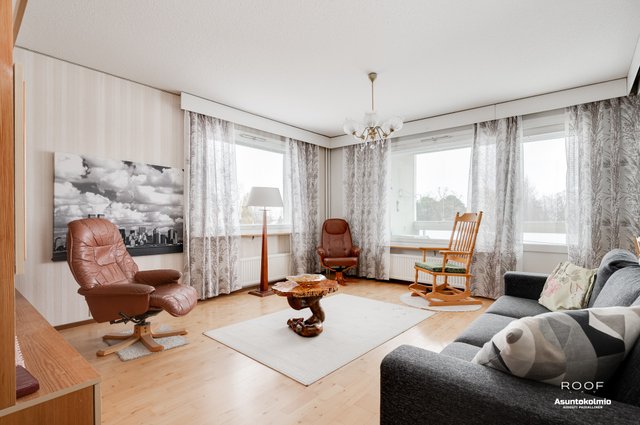 Itse asunto on hissitalon neljännessä kerroksessa ja kyseessä on läpitalon huoneisto! Huoneet ovat rakennustapaan peilaten hyvin avarat ja pohjaratkaisu on toimiva. Erillisestä keittiöstä löytyy kaikki tarpeellinen ja asumismukavuutta lisää suuri lasitettu parveke, johon on käynti olohuoneen puolelta. Asunto on pitkälti alkuperäiskuntoinen, mutta siitä huolimatta hyvin asuttu ja siististi pidetty. Kylpyhuone on remontoitu 90-luvulla.