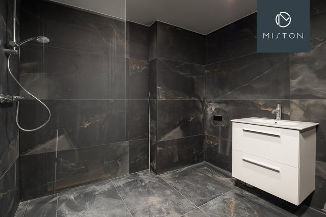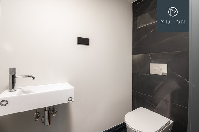 - Pesukoneliitäntä, wc-istuin, suihku, allaskaappi, ja pesuallas