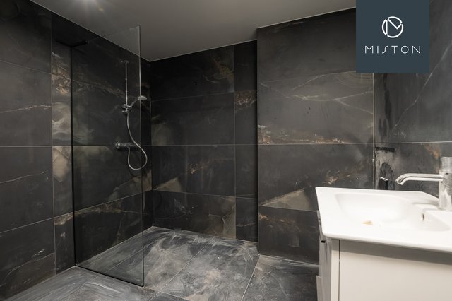- Pesukoneliitäntä, wc-istuin, suihku, allaskaappi, ja pesuallas