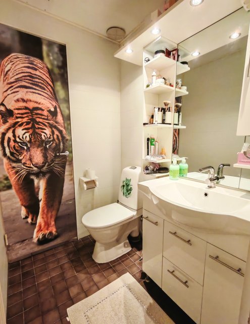 - Pesuallas, pesukoneliitäntä, suihku, ja suihkuseinä