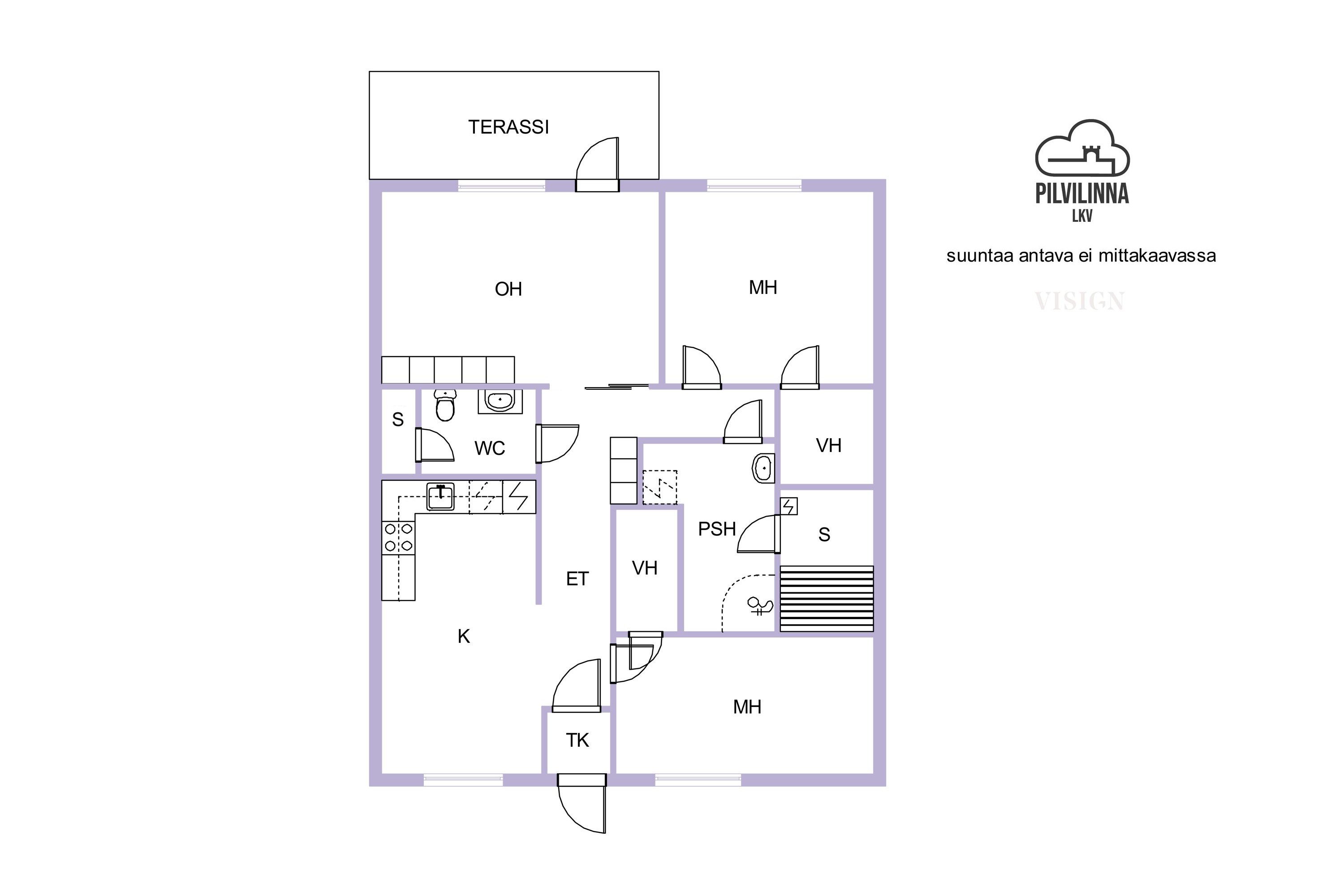 - Yhtiöjärjestyksen mukainen, (Pinta-ala ei ole tarkistusmitattu ja todellinen pinta-ala voi olla suurempi tai pienempi, kuin ilmoitettu)