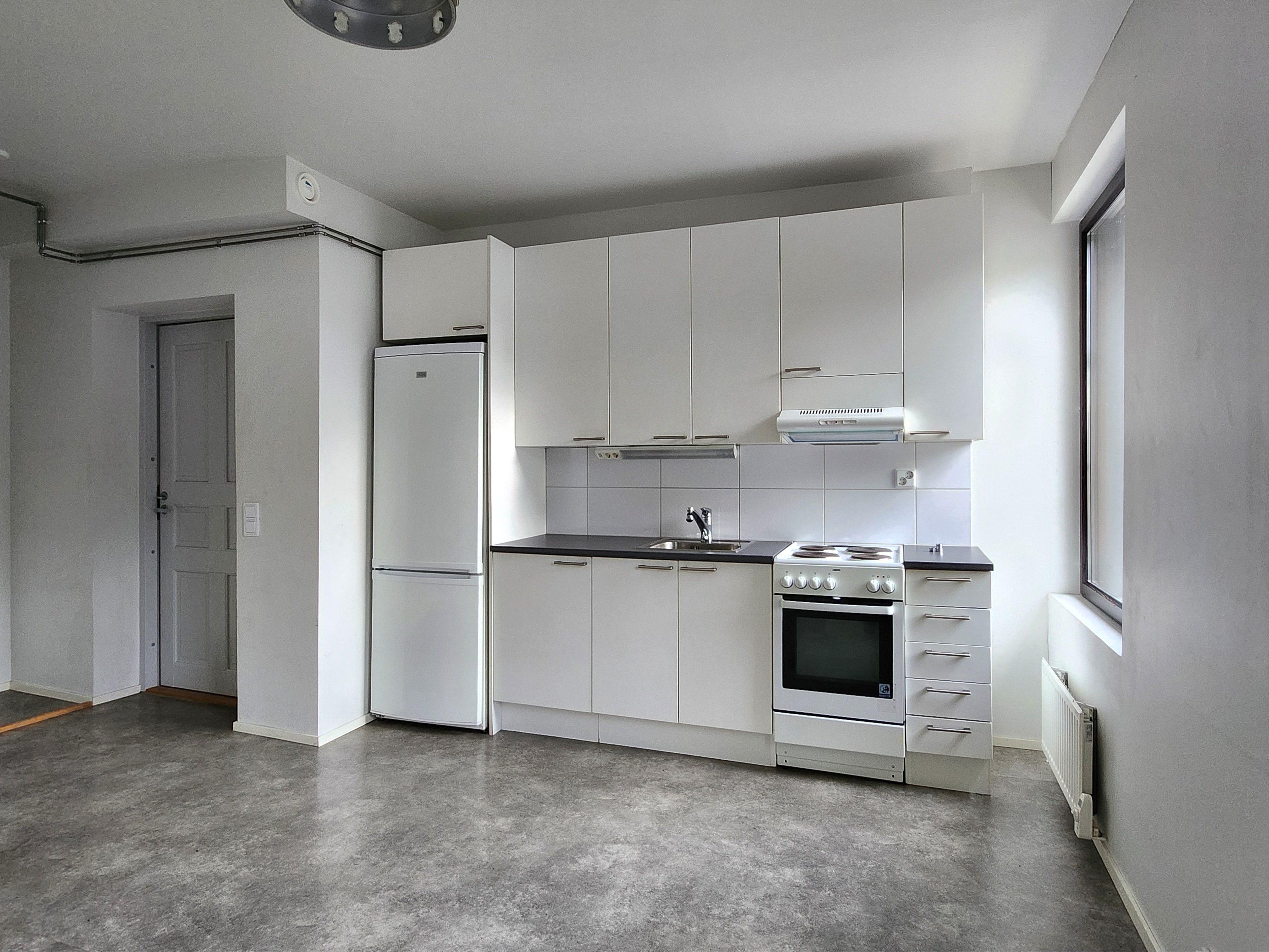 - Jääkaappipakastin, liesi, liesituuletin, uuni, ja pesukoneliitäntä