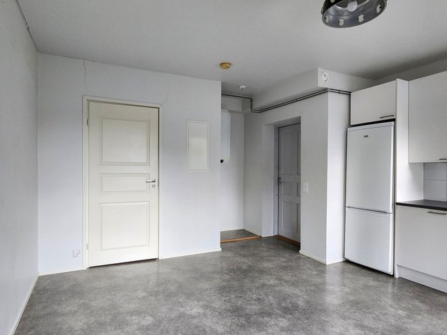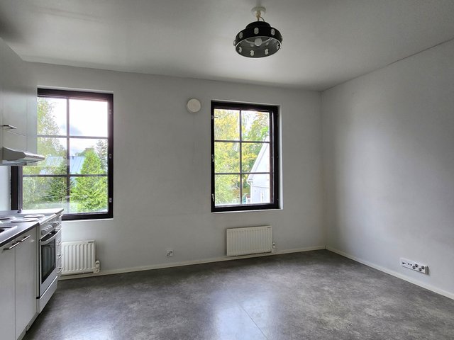 Asunto sijaitsee talon ylimmässä kerroksessa, ja sen ikkunat tuovat runsaasti luonnonvaloa sisään. Keittiö on varustettu käytännöllisesti jääkaappi-pakastimella ja uunilla, ja myös paikka ja liitäntä löytyy pyykinpesukoneelle.