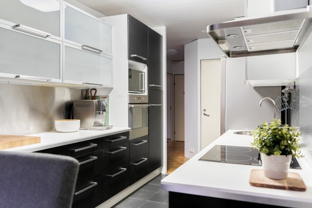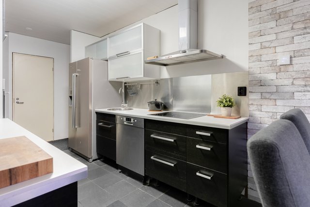 - Jääkaappipakastin, astianpesukone, liesi, erillisuuni, ja mikroaaltouuni