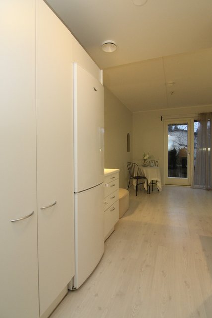 - Jääkaappipakastin, keraaminen liesi, uuni, liesituuletin ja astianpesukone.
