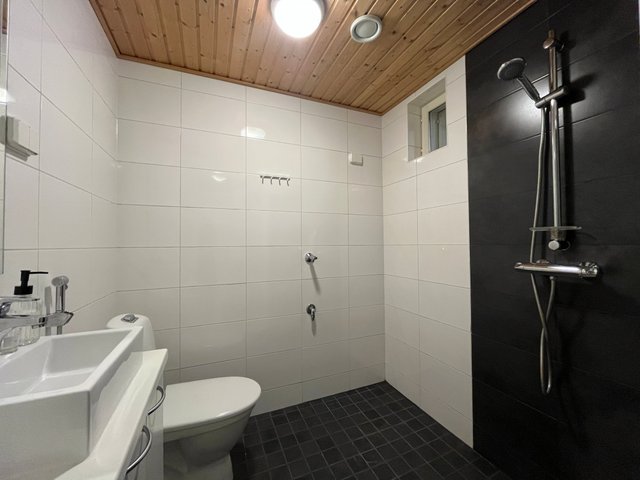 - WC-istuin, suihku, pesukoneliitäntä, peili, pesuallas, ja allaskaappi