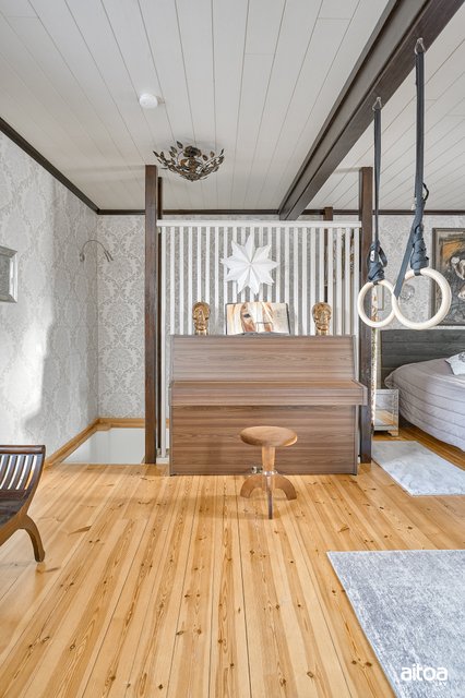 Talosta löytyy kolme makuuhuonetta, ja tilaratkaisut on suunniteltu tukemaan perheen arkea. Keskikerroksen keittiö ja olohuone tarjoavat viihtyisät puitteet yhdessäololle. Kellarikerroksessa sijaitsee saunaosasto, jossa on sähkösauna, sekä kylpyamme, jotka tarjoavat mahdollisuuden rentoutua pitkän päivän päätteeksi. Pihapiiristä löytyy myös erillinen puulämmitteinen pihasauna, jossa tunnelma puolestaan on aivan erilainen.