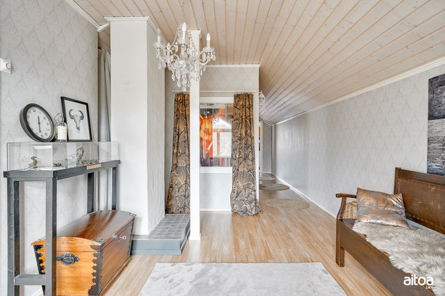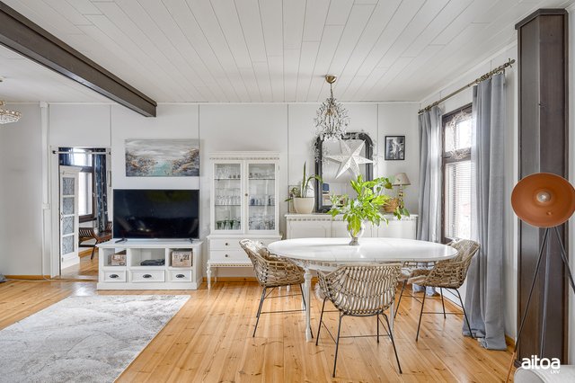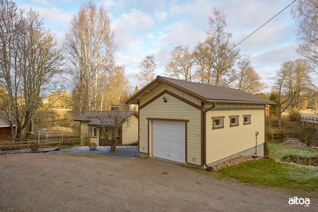 Tämä hurmaava 1926 alkujaan kyläkauppana toiminut rakennus sijaitsee idyllisellä Sutelan alueella Kotkassa. Peruskorjattu ja laajennettu omakotitalo tarjoaa tilaa ja mukavuutta perheelle, joka arvostaa rauhallista ja luonnonläheistä ympäristöä. Talon kokonaispinta-ala on 172 m², ja se seisoo omalla 800 m² tontilla, jossa idyllinen pihapiiri ja joenvarsi luovat ainutlaatuisen tunnelman.