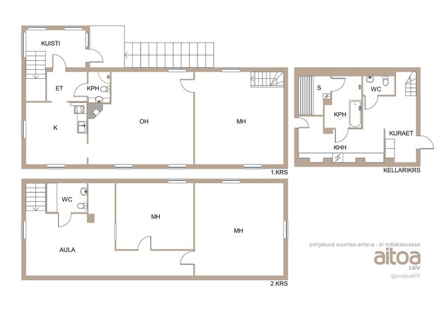 - Tilankäyttö: Kellarikerrokseen on rakennettu saunaosasto- ja kodinhoitotila. Ennen ollut rakentamatonta tilaa.