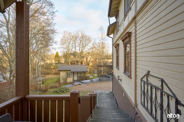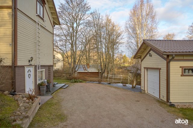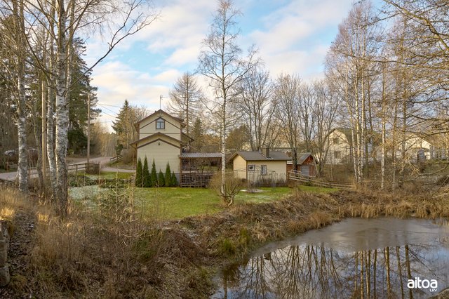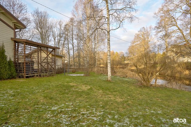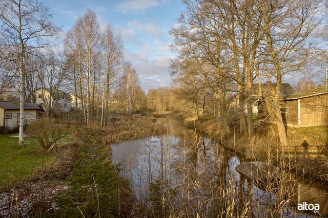- Idyllinen pihapiiri, jossa joenvarsi tuo oman lisämausteensa alueen tunnelmaan.