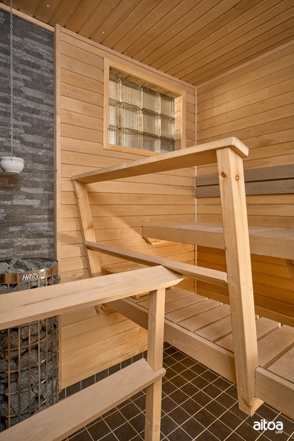 - Kellaritiloissa sähkösauna. Ulkona puulämmitteinen pihasauna.