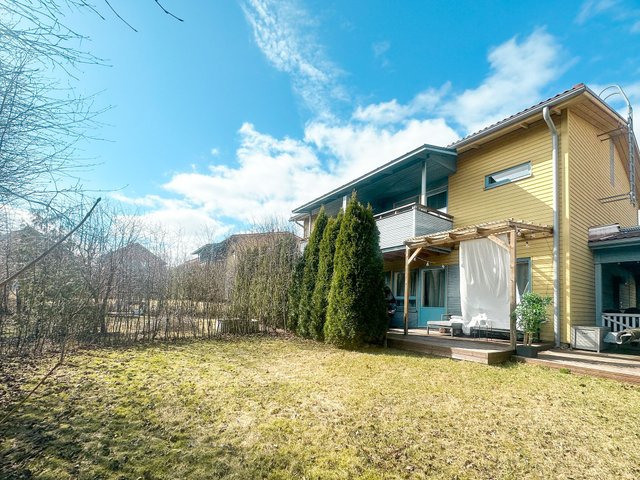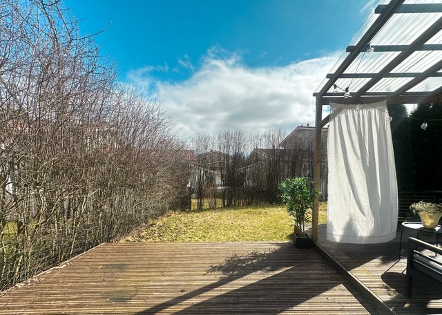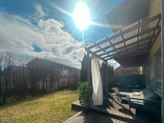 - Suojaisa takapiha, jossa terassi ja nurmikkoalue.