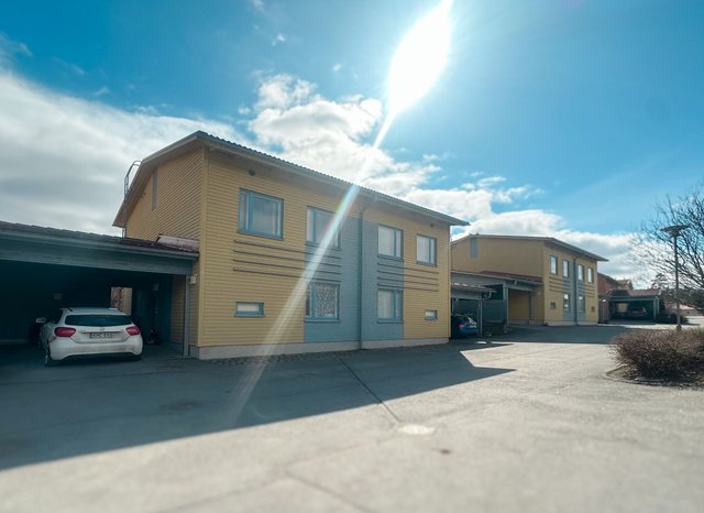 Oma autokatospaikka suoraan etuoven vieressä. Lisäksi asunnolle kuuluu toinen autopaikka. Ulkovarasto tarjoaa hyvin säilytystilaa harrastusvälineille.