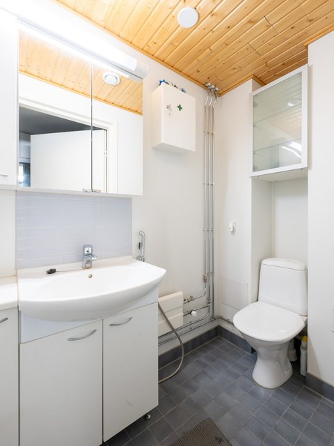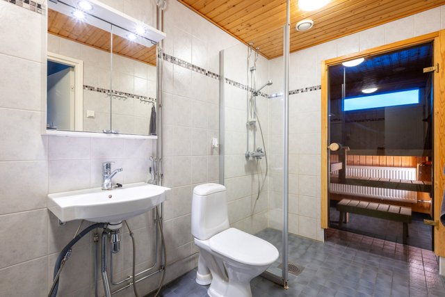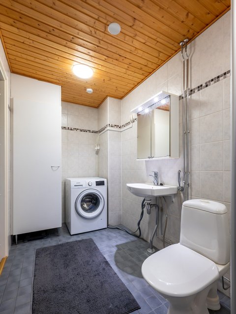 - Lattialämmitys Pesukoneliitäntä Peilikaappi Suihkuseinä Suihku WC-istuin