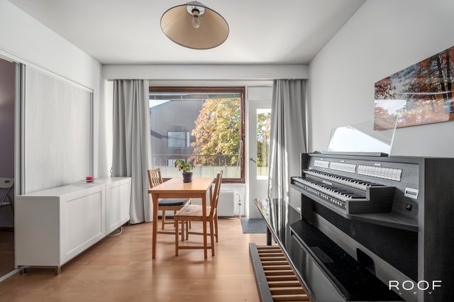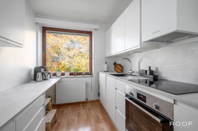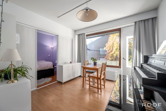 Asunto on hyväkuntoinen ja sen 50 neliötä on käytetty tehokkaasti. Olohuoneen ja makuuhuoneen parkettilattiat luovat lämpimän tunnelman, ja keittiön modernit varusteet, kuten induktioliesi ja integroitu astianpesukone, tekevät arjesta sujuvaa. Kylpyhuone on laatoitettu ja siellä on pesukoneliitäntä.
