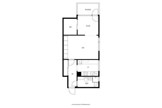- VARUSTUS: Induktioliesi, Uuni, Liesituuletin (suodatin), Hana, Kaapisto, Allas, Astianpesukone (integroitu), Jääkaappipakastin (integroitu). TASOT: Laminaatti. VÄLITILA: Laminaatti. SEINÄT: Maalattu. LATTIA: Parketti.