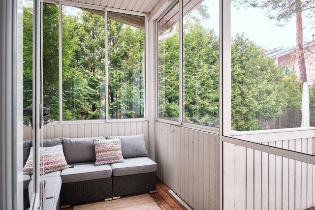 - Olohuone on porrastettu ja siinä on upea korkea katto, isot ikkunat, sälekaihtimet. Kaunis kiertoilmatakka. Kulku lasitetulle parvekkeelle ja takapihalle.