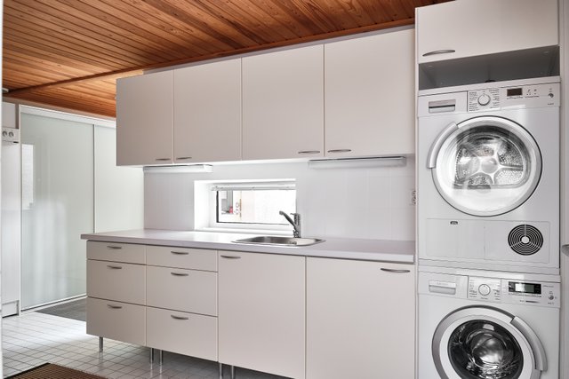 - Runsaasti kaappitilaa, työtasot laminaattia, allas, hana, pesukoneliitäntä. Electrolux kuivauskaappi.