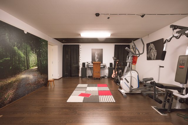 - Kellarikerroksen suuri harrastehuone.