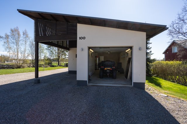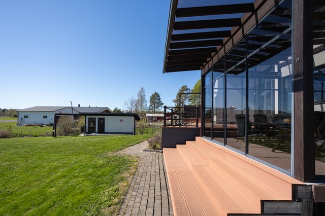 Stor, lättskött tomt, garage och förråd. Förberett rördragning under terrassen för utomhusjacuzzi. Ett representativt hem för dig som värdesätter kvalitet, rymlighet och mångsidighet.