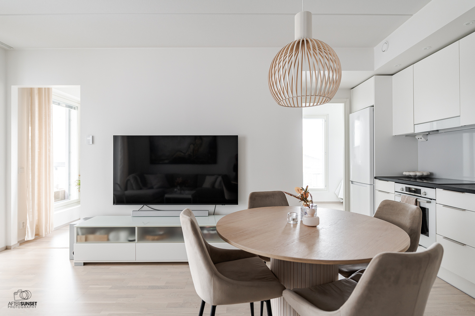 Kodin sydämen muodostaa avara olohuone-keittiö. Keittiössä on laadukkaat kodinkoneet – induktioliesi, erillisuuni, astianpesukone, mikro ja jääkaappi/pakastin – sekä runsaasti kaappitilaa. Tilava lasitettu parveke tuo asumiseen lisätilaa ja toimii pitkälle syksyyn mukavana oleskelupaikkana.
