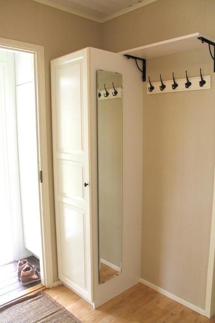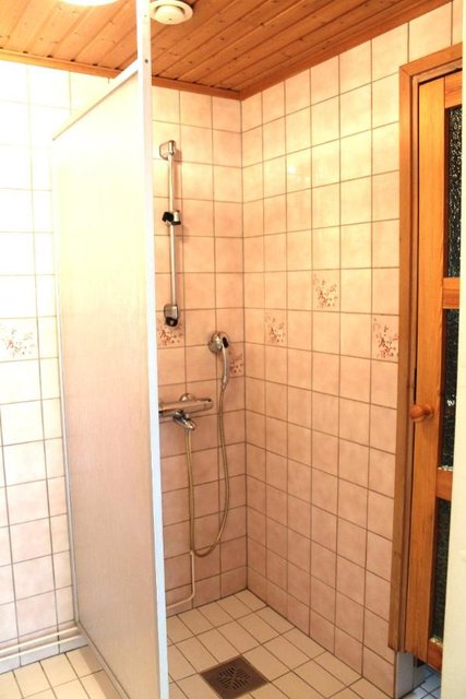 - WC-istuin, suihku, suihkuseinä, pesukoneliitäntä, lattialämmitys, ja peilikaappi