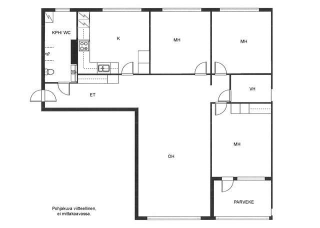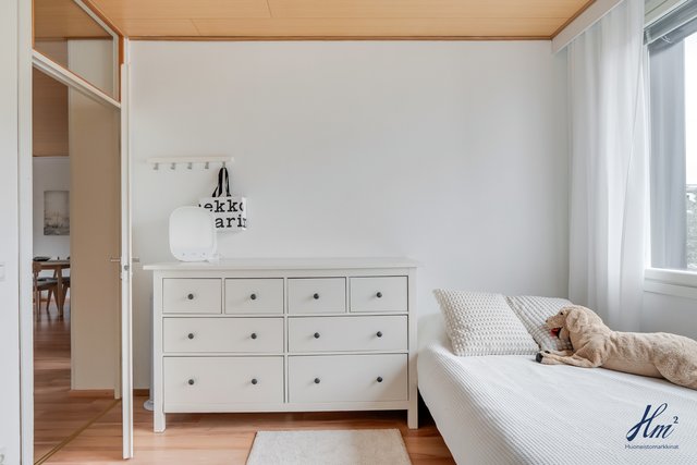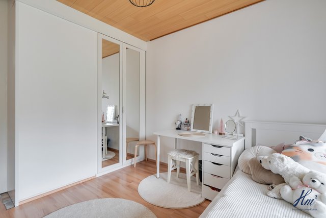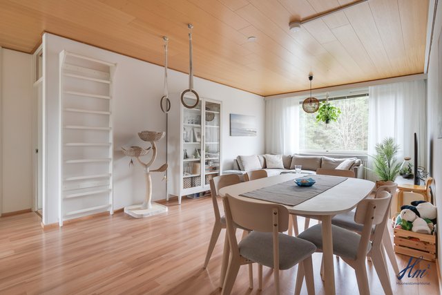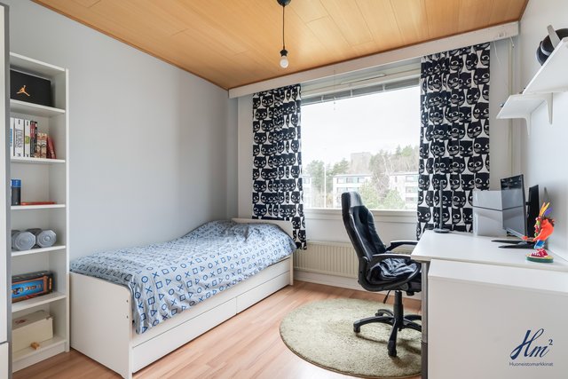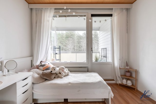 Asunnossa on kolme hyvänkokoista makuuhuonetta, lisäksi vaatehuoneesta tehty lisämakuutila, avara olohuone sekä lasitettu parveke. Keittiö ja kylpyhuone on remontoitu vuonna 2023, joten kokonaisuus on siisti ja heti käyttövalmis ilman remonttitarpeita.