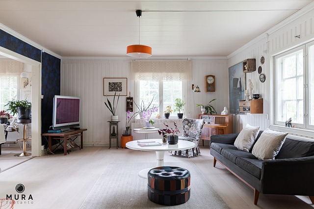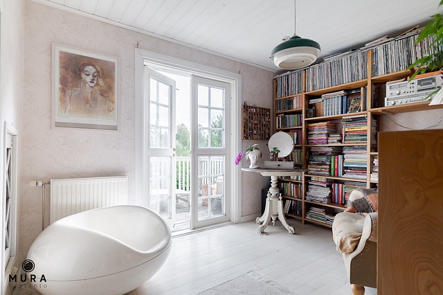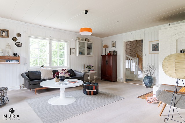 - Avara ja valoisa olohuone, jossa varaava takka. Lattia kovetettua Bjelin puulattiaa.