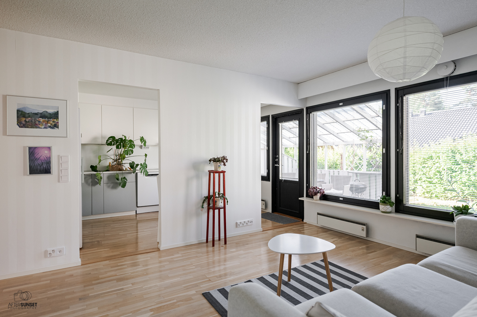 - Kiinteät valaisimet, sälekaihtimet, verhokiskot, seinänaulakko ja ilmalämpöpumppu