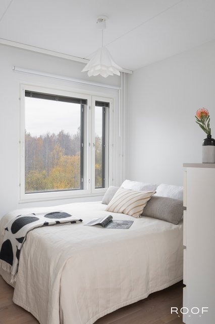 - Makuuhuoneiden lattiat parkettia ja seinät maalattu.