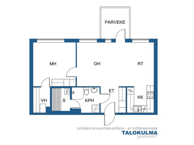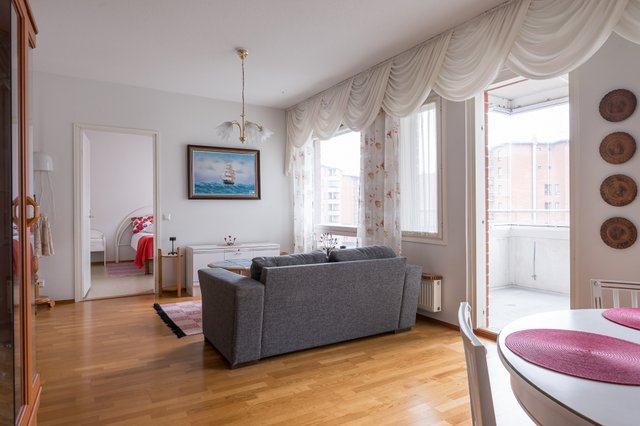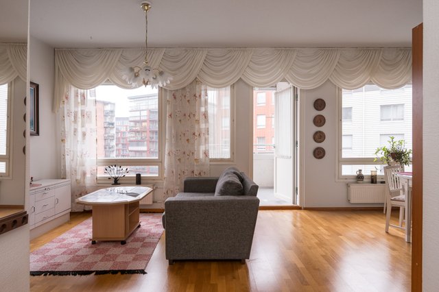 - Avara olohuone, jonka yhteydessä ruokailutila ja kulku huoneiston lasitetulle parvekkeelle