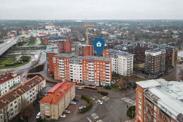 Sijainti on erinomainen: kaikki keskustan palvelut ovat kävelymatkan päässä, liikenneyhteydet Helsingin suuntaan lähtevät aivan talon vierestä ja lähistöltä löytyvät hyvät paikallisbussiyhteydet, pyörätiet sekä autolla liikkujille nopeat reitit. Turun linja-autoasema sijaitsee 300 metrin päässä ja rautatieasemallekin kertyy matkaa vain 1,3 kilometriä.