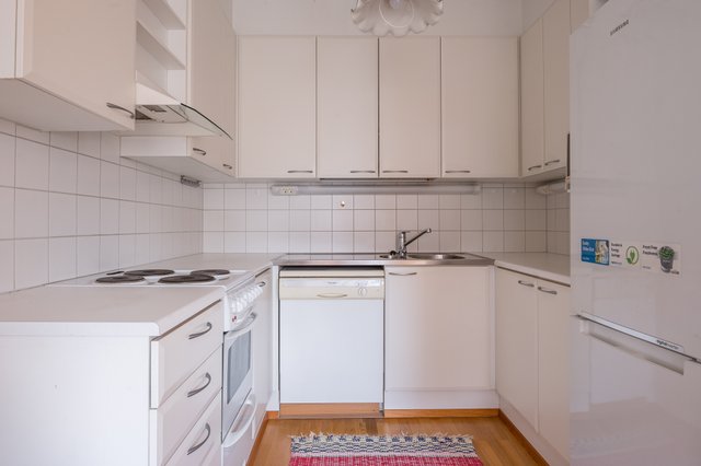 - Jääkaappi, liesi, uuni, astianpesukone, ja liesituuletin