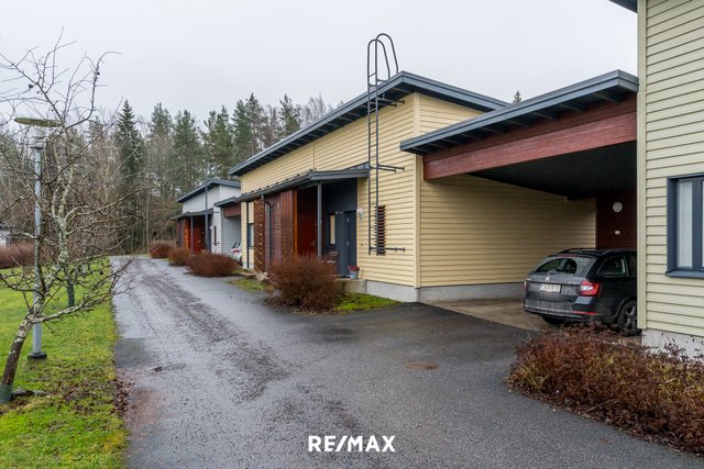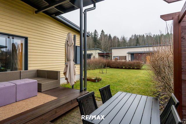 Takapihalla on katettu terassi, jossa voit nauttia ulkoilmasta ympäri vuoden. Terassin yhteydessä on myös kylmä ulkovarasto ja lisäsäilytystilaa löytyy yhtiön yhteisestä lämpimästä varastorakennuksesta, jossa on oma häkkivarasto. Etupihalla on asuntoon kuuluva autopaikka sähköauton latausvalmiudella.