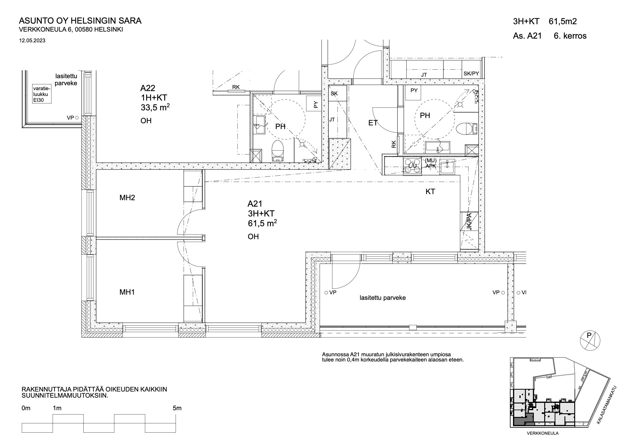 Asunto Oy Helsingin Sara on valmis. Saran asunto A 21 on erittäin hyvällä pohjaratkaisulla toteutettu kulma-asunto, jossa keittiö-/ruokailutila on avara ja valoisa, ja lasitettu parveke ruhtinaallisen suuri!
