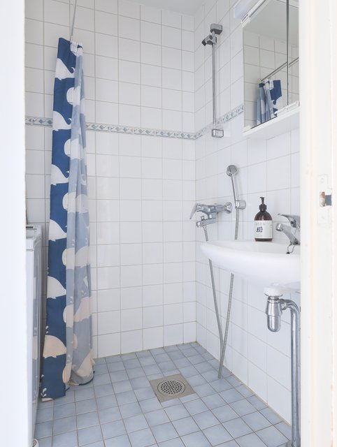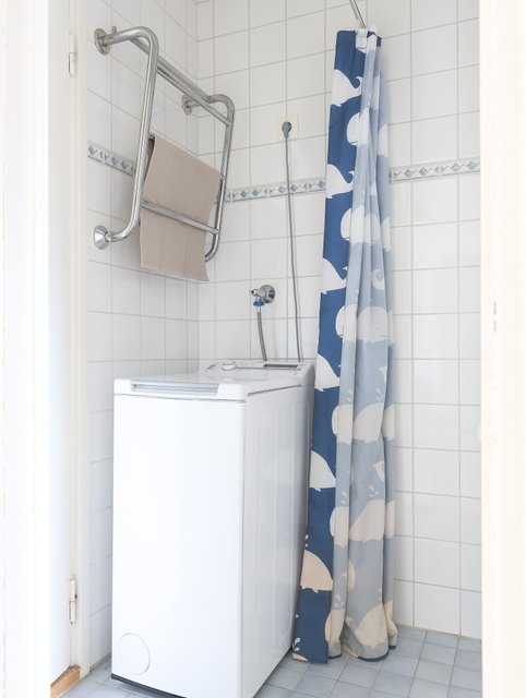 - VARUSTUS: Suihku, Pesukoneliitäntä, Peilikaappi. Hana, Allas, Pyyhekuivain (vesikierto). SEINÄT: Kaakeli. LATTIA: Laatta.