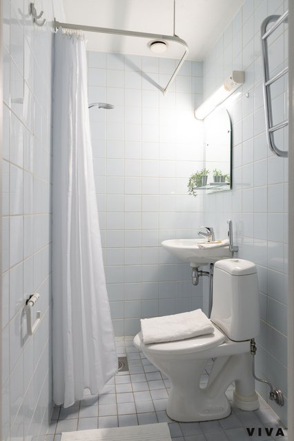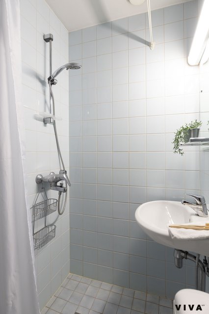- WC-istuin, suihku, pesukoneliitäntä, peili, ja bidee-suihku