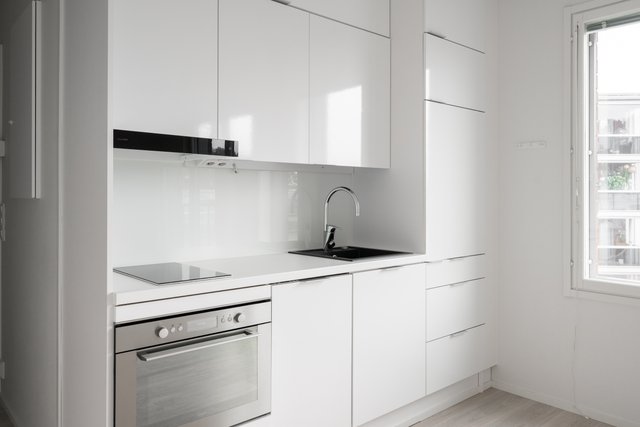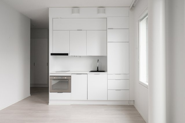 - Keittiön varustuksena jääkaappi, pakastin, astianpesukone, erillisuuni, liesitaso, liesituuletin, kiinteät valaisimet. Lattiapinnat laminaattia, seinäpinnat maalattu.