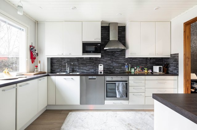 - Jääkaappi, erillinen pakastin, erillisuuni, liesi, liesituuletin, ja astianpesukone