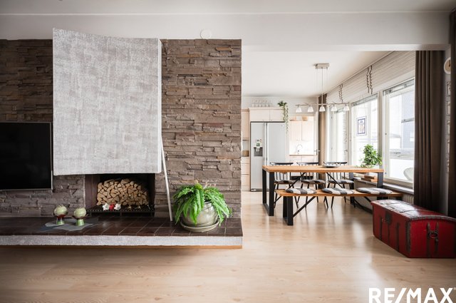Yhtiöjärjestyksen mukaan asunto on 5h+k mutta vuonna 2010 on huoneistoon tehty täydellinen muodon muutos. Remontti on toteutettu ajattoman nuorekkaaseen tyyliin. Materiaali ja värivalinnoissa on löydetty kodikas ja lämminhenkinen tunnelma. Remontin yhteydessä on uusittu mm. keittiö kodinkoneineen, kylpyhuone, rakennettu sauna ja kodinhoitohuone myös wc on saanut uuden ilmeen. Kaikki seinä- ja lattiapinnat on uusittu.