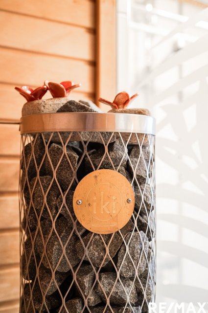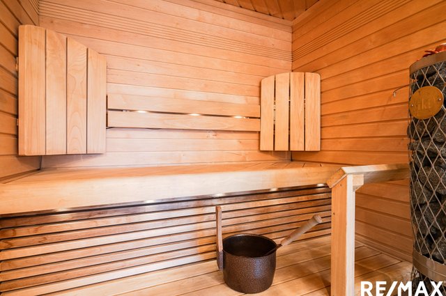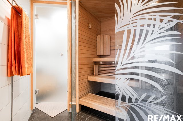 - Sauna on rakennettu vuonna 2010. Saunassa on sähkökiuas. Seinät on puupaneeli ja lattiat on laatoitettu. Tilassa sähköinen lattialämmitys.