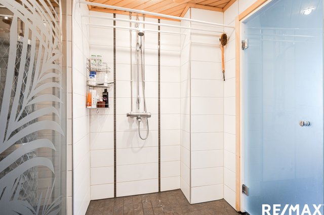 - Kylpyhuone on uusittu vuonna 2010. Seinät ja lattia on laatoitettu. Tilassa lattialämmitys.